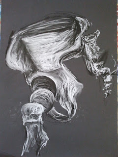 As we didnt have long to do this piece a picked a close up section of the skeleton, also i didnt want to draw the materials drapped over them. I tryed smudging in the lines to have a flat colour rather than the individual lines. From comparing this and my drawing for last week i prefer the one where I havnt blended any of the mark making together.