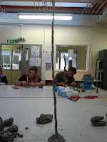In our first session we looked at the properties of clay. The task we were given was to try and make the tallest free standing sculpture. These two are structures just using clay without really strengthening it in anyway. You couldn't build a tall structure like this because of the properties of the clay.